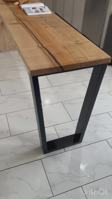 A true celebration of the modern farmhouse aesthetic, this piece doesn't shy away from the history of the wood. Instead, it highlights natural imperfections with stunning resin-filled cracks that emphasize its individual character.